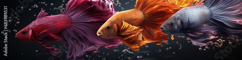 Vibrant Siamese Fighting Fish in Panoramic Display