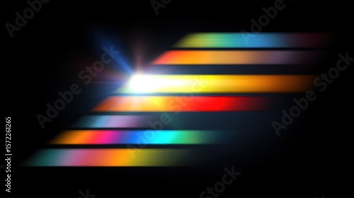 Vibrant, staggered, horizontal bands radiate light against a dark backdrop