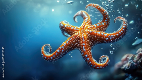 vibrant Starfish gracefully swims through the deep blue ocean