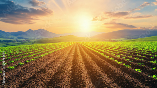 sunrise, farm, landscape, agriculture, field, crop, nature, rural, growth, sunlight, horizon, dirtied, plantation, environment, scenic, vibrant, serenity, hill, earth, fresh, greenery, harvest, cultivation, sky, fertile, beauty, morning, meadow, calmness, sunshine, countryside, plant, organic, seasonal, picturesque, pastoral, emerging, expansive, natural, field, peaceful, bright, farming, rejuvenation, nurturing, dawn