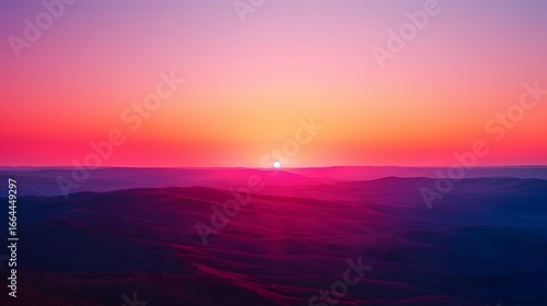 Vibrant Sunset Landscape: Pink & Purple Hues Over Rolling Hills