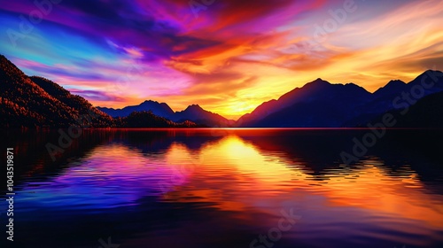 Vibrant sunset over serene lake