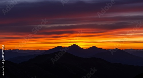 sunset, mountain, landscape, nature, sunrise, orange, red, purple, sky, silhouette, hill, horizon, twilight, dawn, dramatic, vibrant, colourful, scenic, view, panorama, peak, ridge, range, outdoors, travel, adventure, photo, image, photo, picture, serene, peaceful, calm, tranquil, beautiful, stunning, amazing, breathtaking, spectacular, gold, hours, natural, light, colours, mountain, range