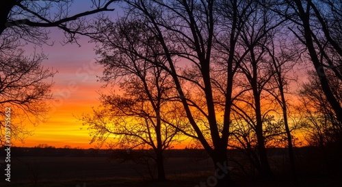sunset, tree, silhouette, sky, orange, yellow, purple, nature, landscape, evening, twilight, autumn, fall, colours, vibrant, scenic, beautiful, peaceful, tranquil, serene, calm, horizon, field, branch, dark, light, bright, gold, red, timberland, outdoors, environment, natural, view, vista, scenery, image, photo, photo, picture, art, artwork