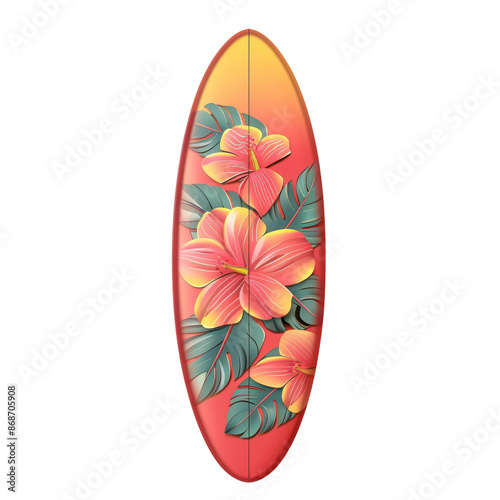 Vibrant surfboard with colorful floral design. Ideal for tropical vibes, beach scenes, and summer adventures.