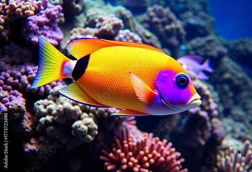 Vibrant tropical fish swimming in coral reef aquarium, fin, clownfish