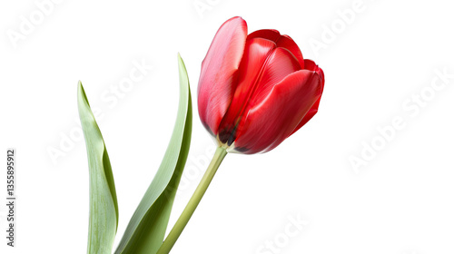 tulip, red, flower, bloom, flora, nature, plant, beauty, spring, floral, botany, garden, elegant, vibrant, closeup, isolated, blossom, growth, delicate, freshness, single, stem, leaf, natural, macro, bright, colourful, detail, texture, studio, background, flourishing, decorative, aesthetic, gardening, seasonal, tender, wellness, lifestyle, serenity, peaceful, calm, positive, energy