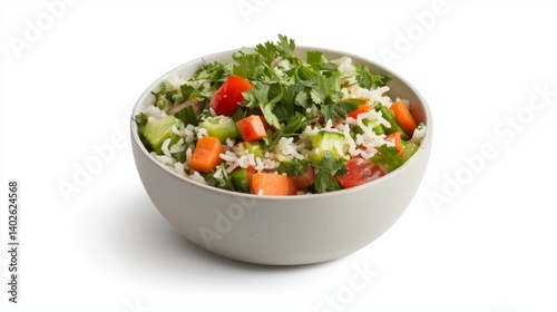 Vibrant vegetarian rice bowl with fresh garden vegetables and wholesome ingredients