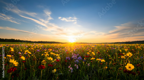 Vibrant Wildflower Meadow at Sunset