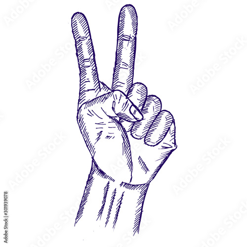 victory finger, doodle illustration and sketch