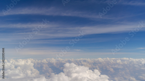 cloud, sky, aeroplane, aerial view, background, fly, travel, atmosphere, heaven, blue, white, horizon, air, no people, nobody, cloudscape, high, freedom, beautiful