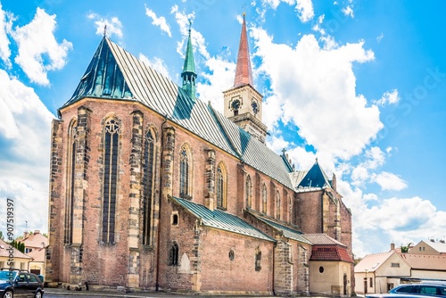 View at the Church of Saint Giles in the streets of Nymburk town - Czech Republic