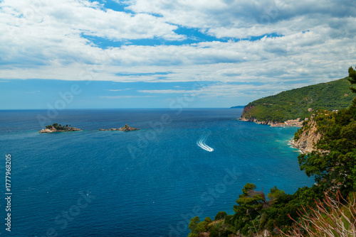 sea, seascape, cliff, city, island, panorama, montenegro, summer, beach, travel, yacht, boat, wind, breeze, wave, panoramic, resort, forest, coast, adriatic, mountain, seacoast, landscape, sunlight, sun, horizon, shore, view, top, beautiful, nature, water, coastline, rock, blue, sky, ocean, turquoise, rock, grass, stone, high, rocky, cloud, vacation, bay, tour tourism