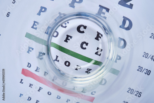 View of an eye chart used for eye examination in hospitals and eye clinics, with copy space on the right. Health concept