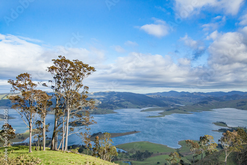 view, lake, st, clair, morning, mountain, paddock, water, rural, nature, bush, sky, tree, land, country, landscape, natural, australia, outside, spring, nsw, hill, elevated, from above, huge, water supply, reservoir, inland