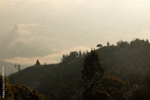 View of rangaswamy peek in kodanadu in the early morning. clouds passing or touching top of the peek or mountain in kodanadu