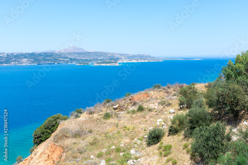bay, beach, beautiful, blue, coast, coastline, crete, greece, holiday, island, landscape, mediterranean, mountain, nature, ocean, rock, sea, shore, sky, summer, sunny, tour tourism, holiday maker, travel, tree, tree, vacation, view, water, yellow