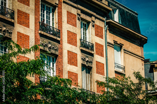 View of the facade of a building in the downtown of Reims in France