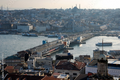 View of the Galata bridge from above. Istanbul, Turkey