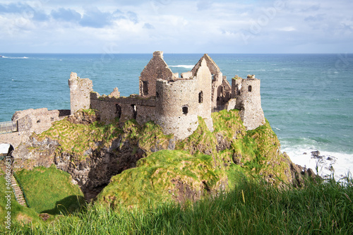 View to medieval Dunluce castle ruins in Northern Ireland.