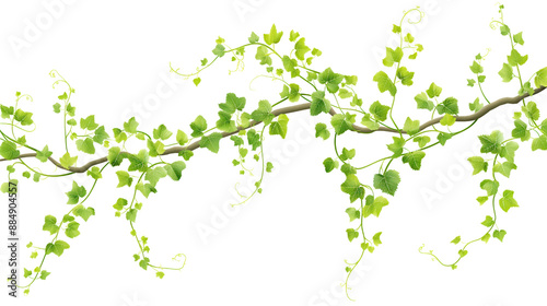 Vine creeping along a branch, realistic illustration, glossy green, isolated on transparent background