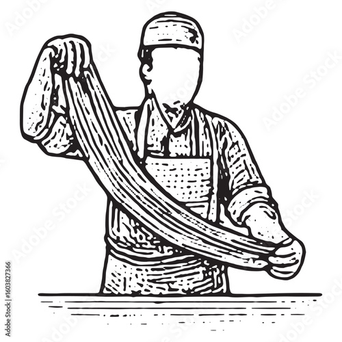 Vintage Black and White Chef Steaming Food Illustration