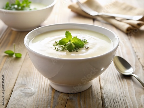 Vintage Creamy Soup: Delicious Dairy Bowl, Closeup Food Photography