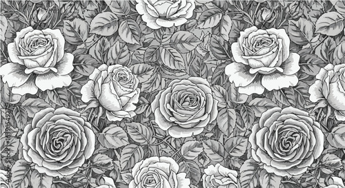 rose, floral, seamless, pattern, vintage, flower, garden, leaf, grey, background, elegance, beautiful, decorative, design, nature, spring, blossom, romantic, texture, art, drawing, textile, wallpaper, monochrome, fabric, flourish, botanical, classic, artistic, detailed, ornate, graphic, template