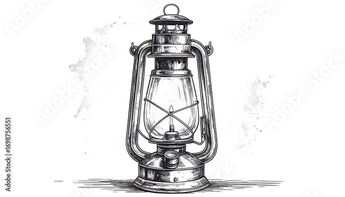 Vintage hand-drawn kerosene lamp