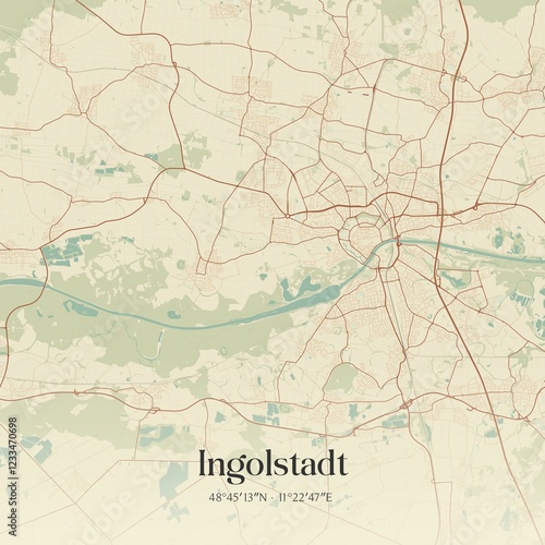 Vintage map of Ingolstadt, Germany.