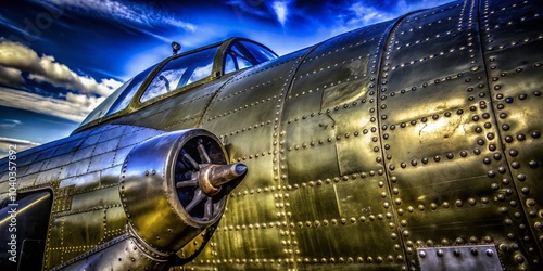 Vintage Military Fighter Aircraft Metal Skin Detail with Rivets and Serrations Close-Up Photography