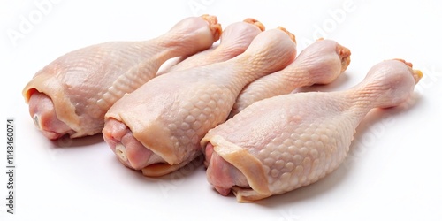 Vintage Photo: Four Raw Chicken Legs, Isolated, White Background, High-Resolution, Food Photography, Culinary Image, Stock Photo