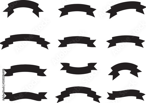 Vintage Ribbon Banner Set – Classic Vector Silhouette Pack Retro Ribbon Vector – Decorative Banner Silhouette Collection Elegant Ribbon Banners – Vintage Scroll & Label Vector Set Hand-Drawn Ribbon