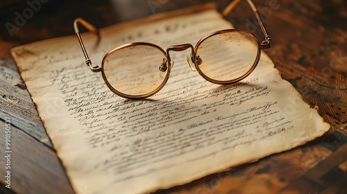 Vintage Round Glasses on Old Manuscript Paper