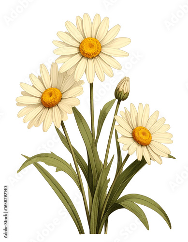 Vintage White Daisy Birth Flower Bouquet Illustration April Flower