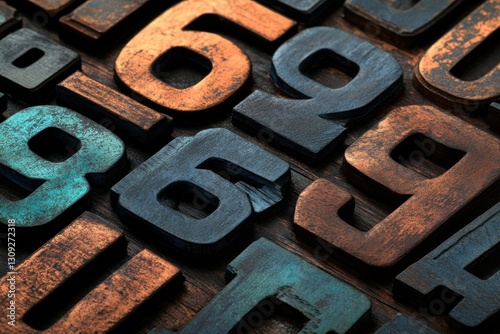 Vintage Wooden Numbers in Various Colors on Dark Background