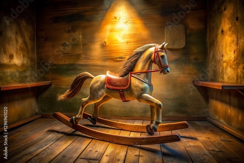 Vintage Wooden Rocking Horse Toy, Long Exposure Childhood Nostalgia Photo