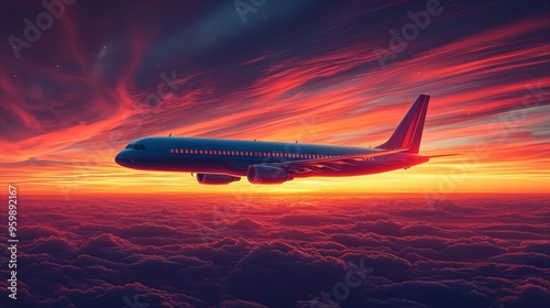Vintage worn illustration of passenger airplane in the sky with a retro aesthetic, capturing classic aviation charm, new beautiful stock image AI