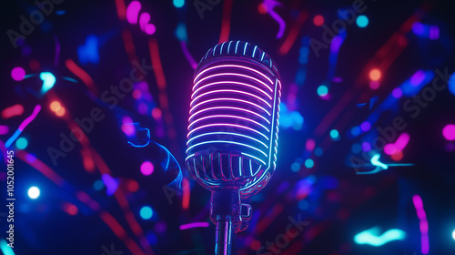 microphone, vintage, neon, light, colourful, music, retro, performance, party, glowing, sound, concert, celebration, audio, recording, entertainment, nightlife, stage, festival, vocal, classic, neon light, performer, night, vibrant, artistic, event, electric, illuminated, club, speaker, technology, spotlight, nostalgia, musical, bright, energy, mood, dynamic