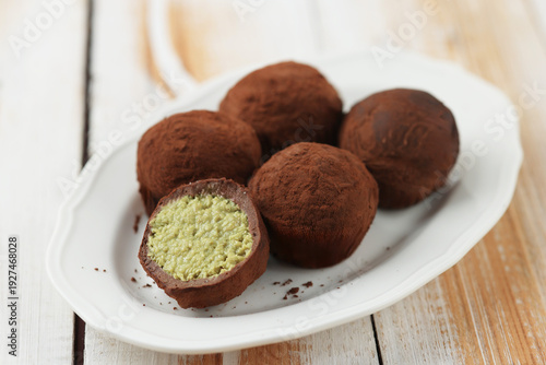thick, nutty, hand-made, soft, chewy, halved, cookie, gooey, food photography, opened, brown, closeup, style, chocolate, cut, plate, serving, indulgent, creamy, modern, pistachio, artisan, green, texture, 1, black, dubai, food, filling, pastry, luxury
