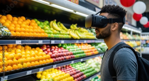 headset, technology, food market, man, shopping, innovation, store, display, futuristic, buyer, buyer, retail, consumer, electronic, modern, virtual, market, buying, client, aisle, online, new, contemporary, fresh, produce, fruit, vegetable, shop, digital, innovative, breakthrough, advanced, progress