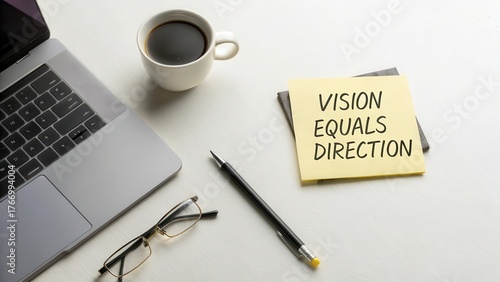 Vision Equals Direction Inspirational Note with Coffee and Laptop