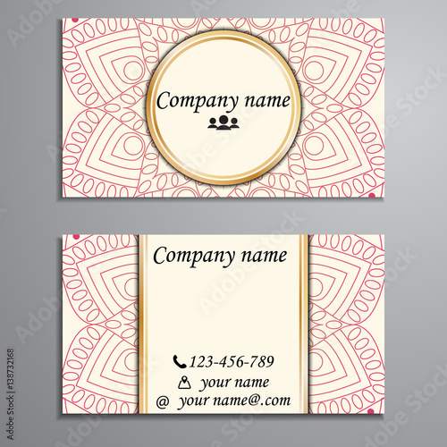 Visiting card and business card set with mandala design element logo. Abstract oriental Layout. Front page and back page