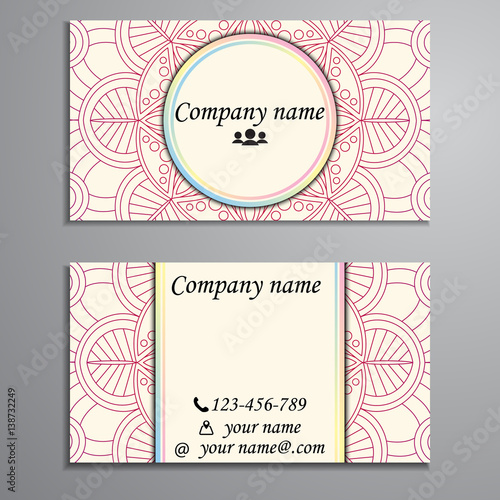 Visiting card and business card set with mandala design element logo. Abstract oriental Layout. Front page and back page