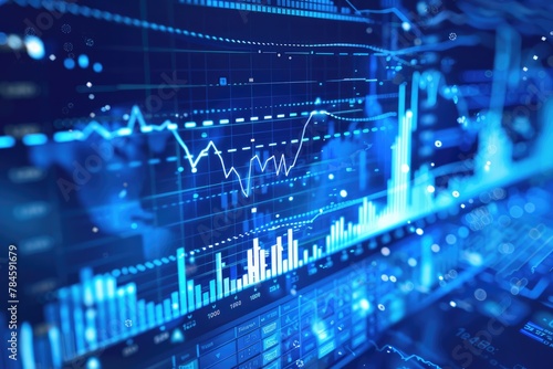 Visual concept featuring a blue economic graph and market data, representing financial analysis and stock market trends.
