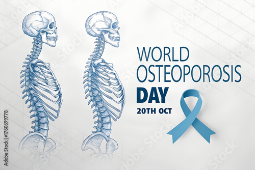 osteoporosis, bone, health, awareness, earth, day, october, prevention, education, support, care, brittle, fracture, calcium, vitamin, strength, density, skeletal, disease, global, spine, compression, curvature, anatomy, medicals, illustration, structure, ribbon, blue, comparison, visual, campaign, advocacy, resilience, mobility, wellness, ageing, risk, diagnosis, treatment, informative, poster, background, grid, bone, condition