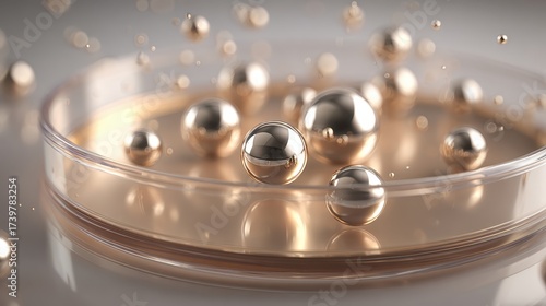 microscopic, sphere, metallic, swarm, technology, science, research, future, visualisation, rendering, illustration, digital, three-dimensional, particle, abstract, shiny, gold, silver, surface, texture, light, fluid, motion, floating, structure, closeup, laboratory, experiment, medicals, biology, nanotechnology, innovation, development, imaging, precision, detail, crystal, clean, transparent, blur, bokeh, composition, geometric, elegant, model, atom