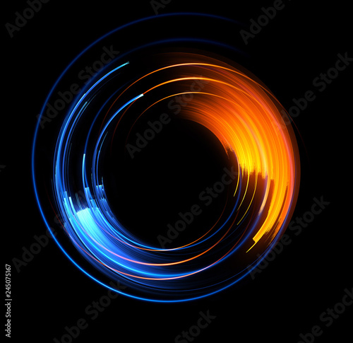 Vivid abstract background. Beautiful design of rotation frame. .Mystical portal. Bright sphere lens. Rotating lines. Glow ring. .Magic neon ball. Led blurred swirl. Spiral glint lines.
