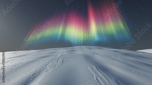 Vivid Colors of the Northern Lights Over Snowy Landscape.
