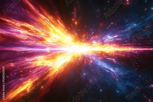 Vivid cosmic explosion radiating energy and color in a deep space setting with stars in the background